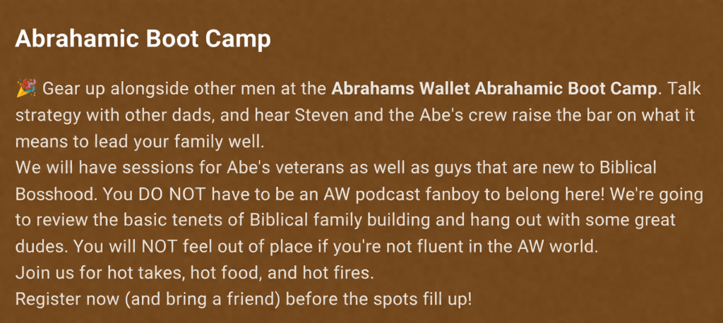 Welcome to our events page! Check out the killer opportunities below to get trained and equipped to lead your home and your dough like a Biblical Boss!